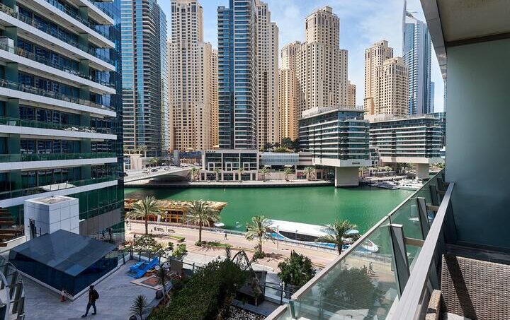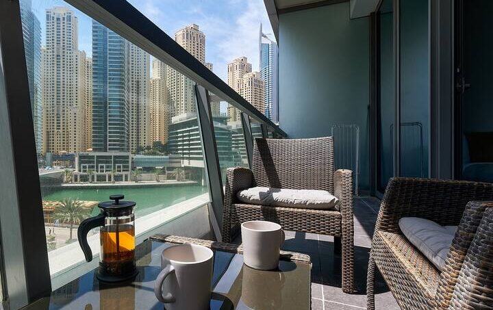 – Balcony with lounge area and stunning Marina views