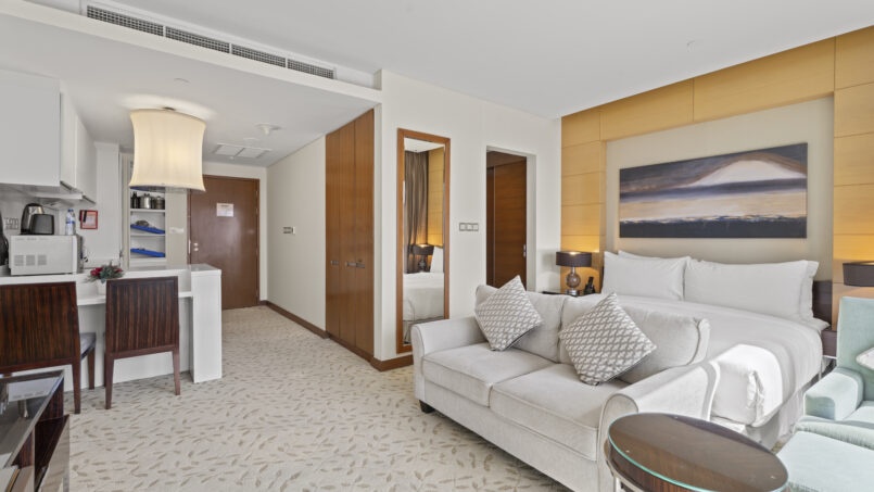 Wake up to breathtaking views of the Burj Khalifa view right from your private balcony. This elegant studio puts you in the heart of Downtown Dubai—just steps above the world’s largest shopping mall.
