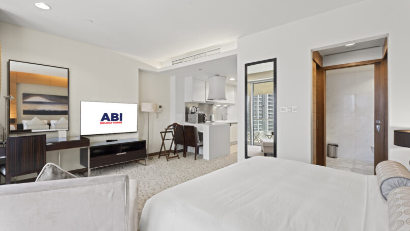 Wake up to breathtaking views of the Burj Khalifa and a partial sea view right from your private balcony. This elegant studio in the iconic Former Address Dubai Mall, now managed by ABI Holiday Homes, puts you in the heart of Downtown Dubai—just steps above the world’s largest shopping mall.