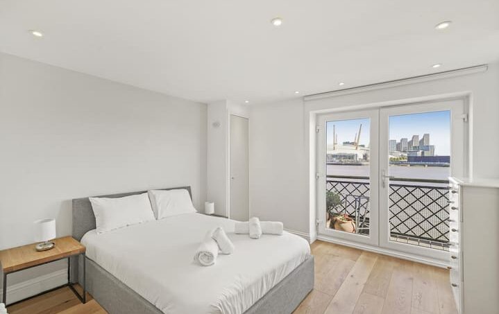 This property was our first property that came to us as a holiday let, and holds a special place in our heart. It is located right alongside the River Thames with stunning views of the O2 and Greenwich. With a large private balcony for the living room and main bedroom, as well as multiple smaller balconies throughout, this apartment has a bright and stylish feel to it.