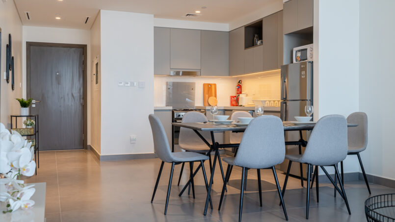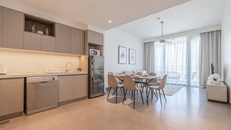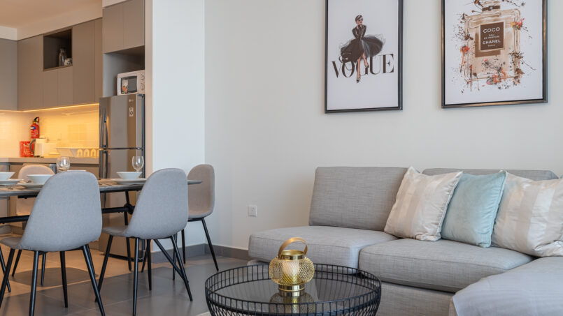 The apartment features high-end luxury furniture and a modern design. The layout is spacious and embraces warm undertones that creates a vibrant atmosphere. Make some memories at this unique and family-friendly place