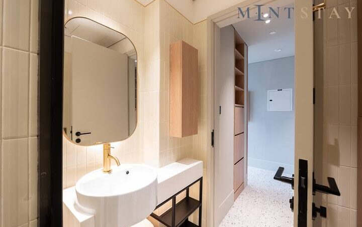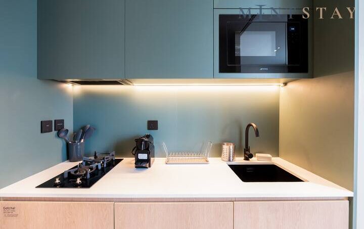 Oh, and laundry? No sweat! There’s a washing machine to keep your threads fresh and clean. After a day of conquering adventures, wind down in the bathroom. There’s a shower, so you can rinse off the day’s craziness however you like. It’s not just a studio – it’s your cozy, functional haven where everything just clicks.