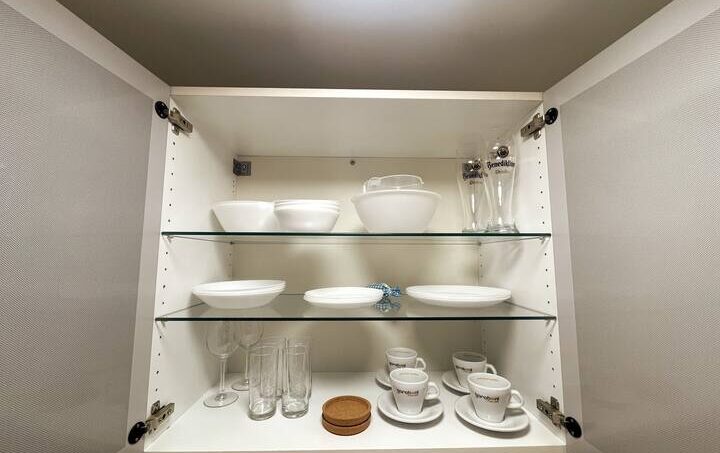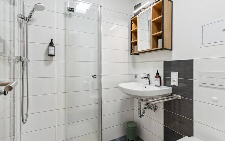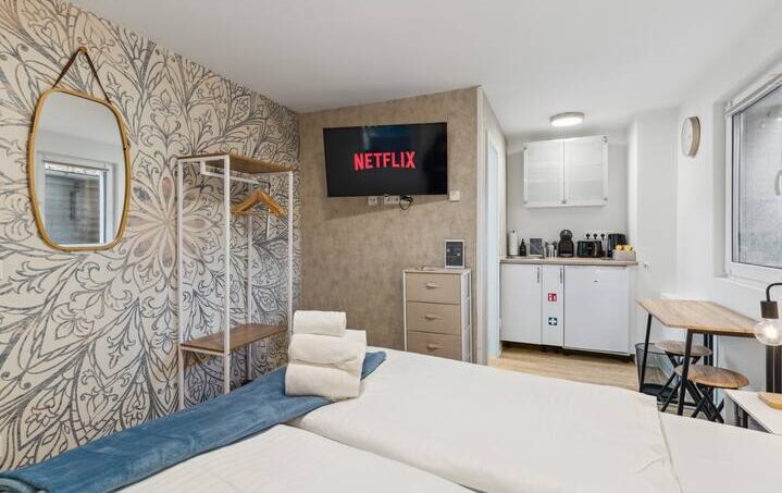 Our apartment features a spacious bedroom with a cozy 160 x 200 cm bed that ensures restful sleep. The high-quality bedding and comfortable mattress guarantee a pleasant night’s rest.