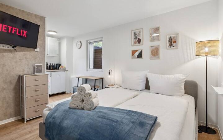 Experience comfort and convenience in our modern serviced apartment for 2 people in Eichwalde! With a spacious 160 x 200 cm bed, ample storage space, a well-equipped kitchenette and entertainment options like Netflix, our apartment offers everything you need for a relaxing stay near Berlin.