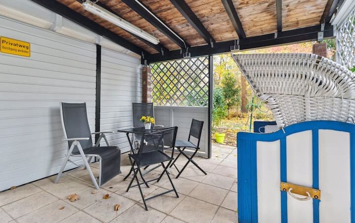 The house with five apartments is situated between two detached houses in a very quiet location on a central plot. In the communal outdoor area you will find a covered terrace with seating and a beach chair.