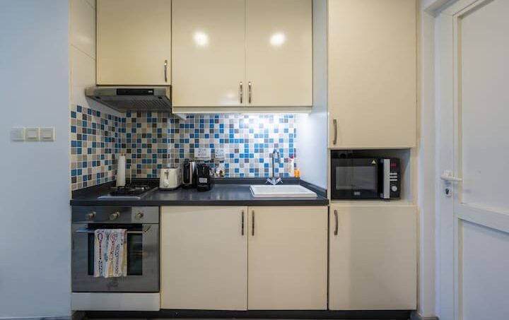 – Fully equipped kitchen (including coffee machine, teapot, toaster, microwave, stove, oven, cutlery, and kitchenware)