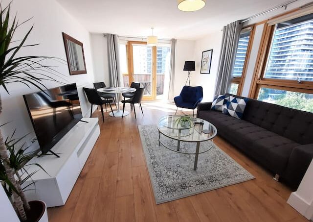 Newly modernised 2 bedroom serviced apartment in the popular South Quay neighbourhood in Canary Wharf.
