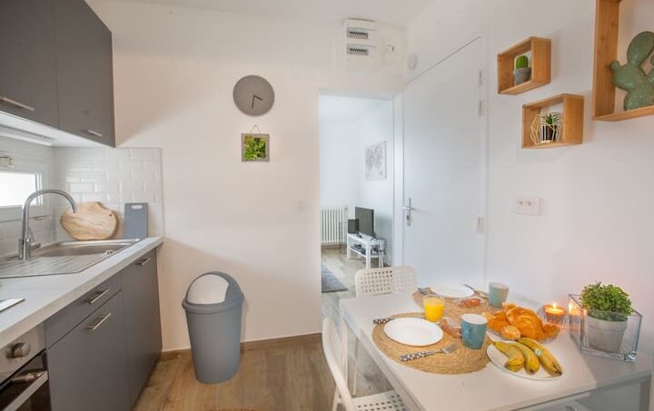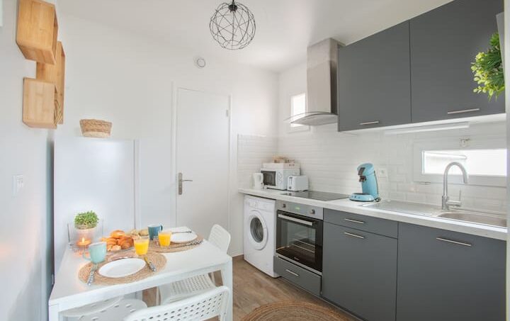 Une cuisine équipée doté d’un four vous attends pour vos plats préférés. Vous trouverez aussi une machine à café , grille pain, bouilloire et micron onde.