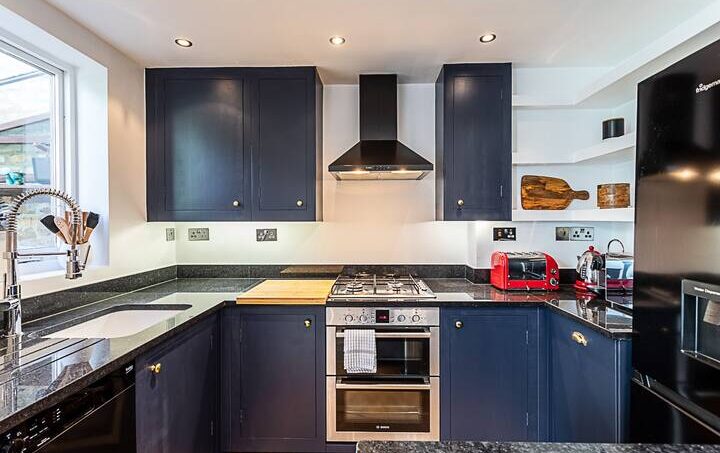 The living room is equipped with a comfortable chesterfield sofa, a coffee table, Smart TV and Bluetooth connected Sonos speaker. The kitchen is fully equipped with modern appliances and includes all cooking utensils that you could need for preparing a quick snack or your evening dinner. The bright bedrooms are equipped with queen and king size beds, and the slate-tiled bathroom is equipped with a free standing, walk-in shower.