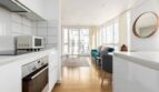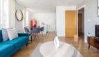 The apartment contains one main bedroom with a double bed and plenty of wardrobe space, although there is an additional sleeping room available on the comfortable sofa in the living room. The living room is a fantastic open-plan space shared with a sleek and fully-equipped kitchen.