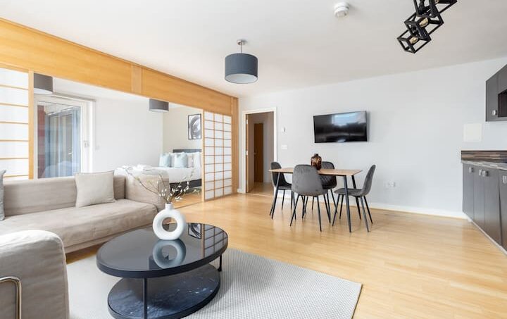 The apartment is great for business travelers with most of the commercial districts a short walk or tube ride away.