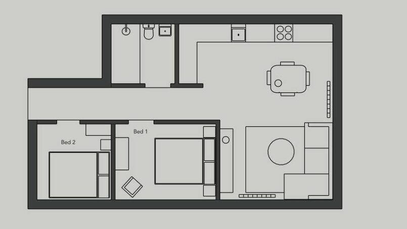 This sunny apartment benefits from a dishwasher, large shower, clean contemporary furniture, king-size and double bedroom and on-street intercom.