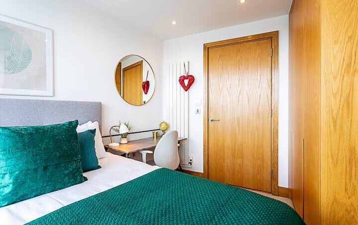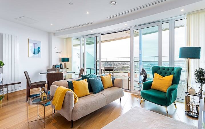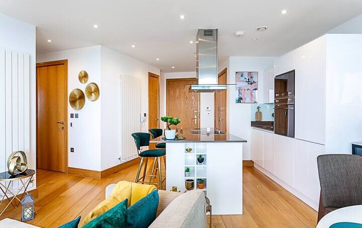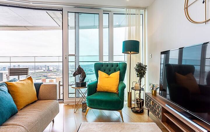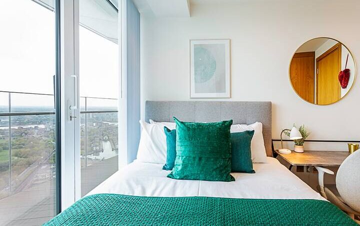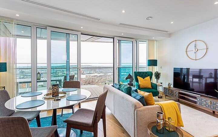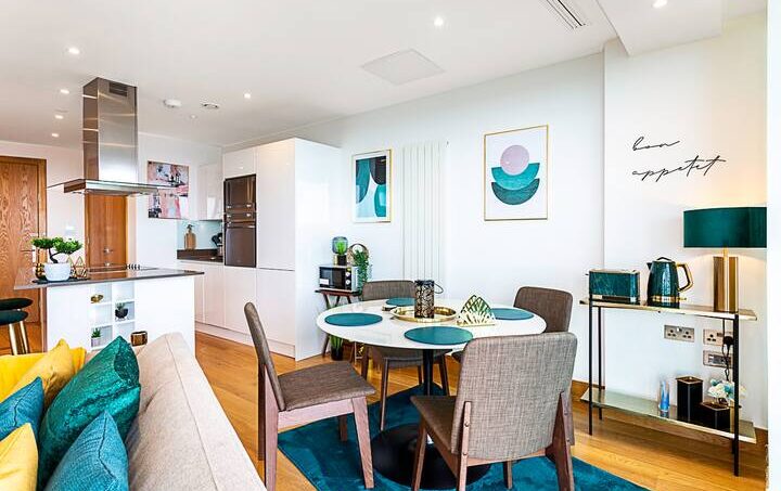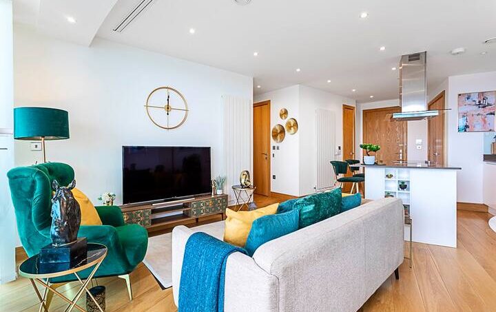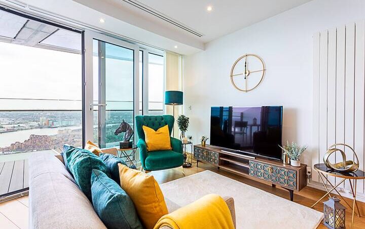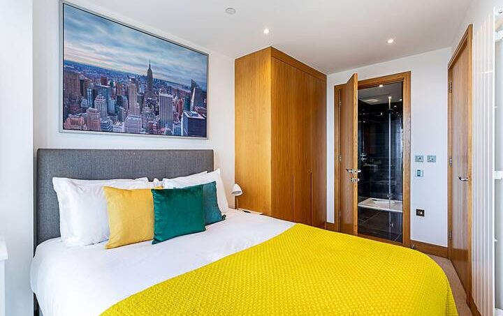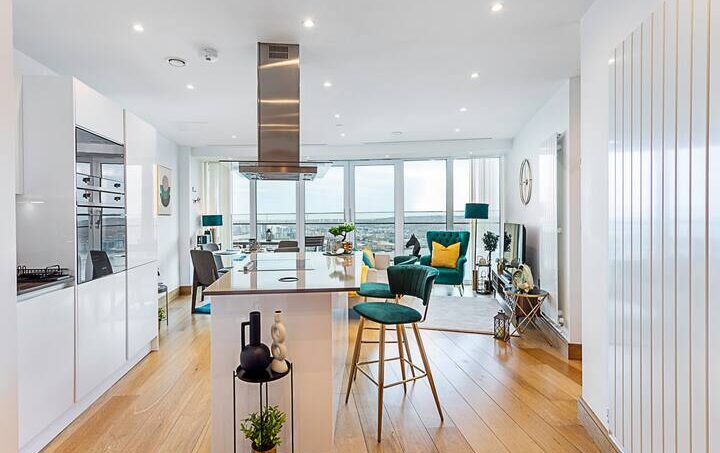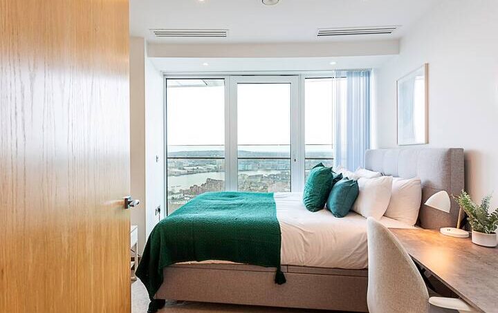 Indulge in an opulent sojourn at our magnificent, fully-appointed urban sanctuary, nestled within the illustrious skyscraper complex in the heart of Canary Wharf. The exquisite two-bedroom residence is adorned with the finest furnishings and boasts an unparalleled standard of sophistication. Immerse yourself in the south-facing sun-drenched, spacious open-plan living and dining area, complemented by a state-of-the-art integrated culinary atelier, featuring ‘Smeg’ appliances.