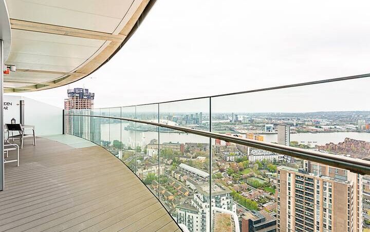 Relish the convenience of a comprehensively equipped utility chamber, two sumptuously-appointed chambers with bespoke built-in wardrobes, and dual lavishly-crafted marble washrooms with underfloor heating. The residence is impeccably finished with oak veneer parquet flooring, customizable ambient illumination, thermostatically regulated central heating, and a cutting-edge colour video entry phone system. Embrace the expansive, private terrace spanning the entire width of the residence, offering unparalleled vistas encompassing the Canary Wharf district, the majestic River Thames, and the iconic O2 Arena. Admire the historic Greenwich Castle whilst luxuriating at the Garden Bar, the ultimate setting for al fresco dining and leisurely repose. The Baltimore Wharf development is an enclave of utmost security, featuring surveillance cameras and a vigilant security detail patrolling the premises.