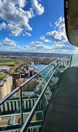 Located on the 34th floor, this beautiful London flat can comfortably accommodate up to four people. The smoke-free property features a living room, two bedrooms, two bathrooms, a kitchen, and a balcony.