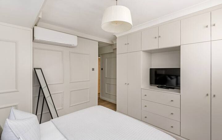 he master suite is a space for winding down well – and waking refreshed. Muted tones, period details and soft light that streams in from the outside. Coffee? We’ve got it covered.. that first sip of coffee tastes better in bed. A wardrobe that protects your pride and joys. A full-size bathtub that might make leaving for the day that bit harder. Molton Brown toiletries to sweeten the deal. And a second double bedroom links up to a private shower room.