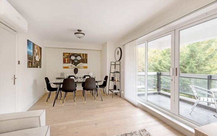 Gather around the glass-top dining table for dinner by a private chef. Or give them a day off – the streamline kitchen has everything you need to put together a home-cooked meal. Step onto the terrace for negronis at sunset overlooking Hyde Park.