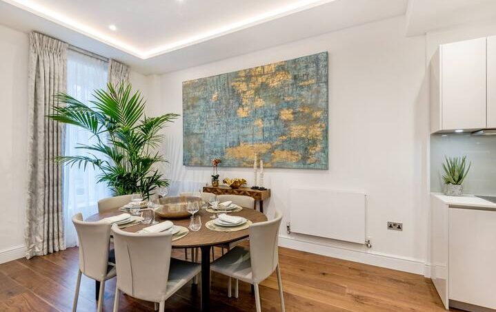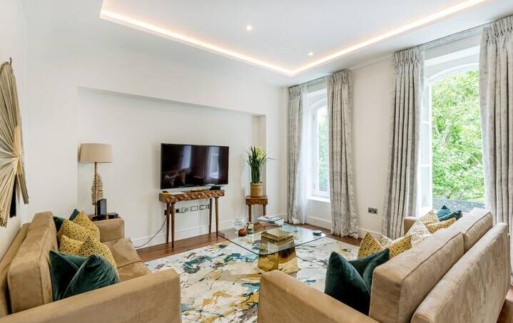 Kensington Gardens looks especially leafy from the open-plan living space, perfect for cooking, dining and kicking back after a long day. That ‘ah’ moment as you sink into the sofa with a cup of tea. Open the French windows and you might see a parakeet.