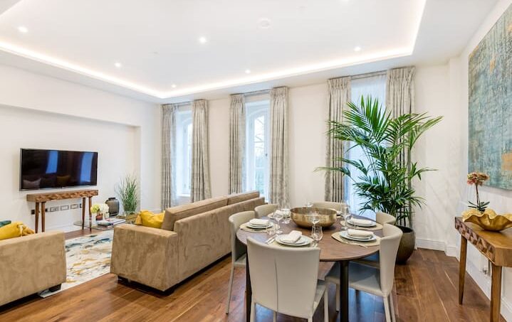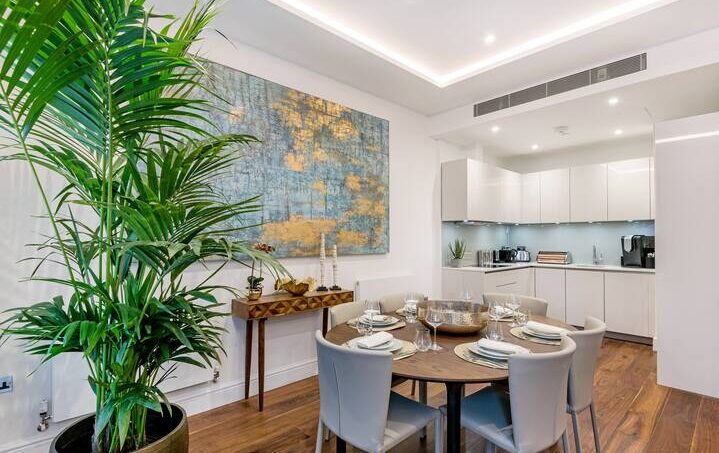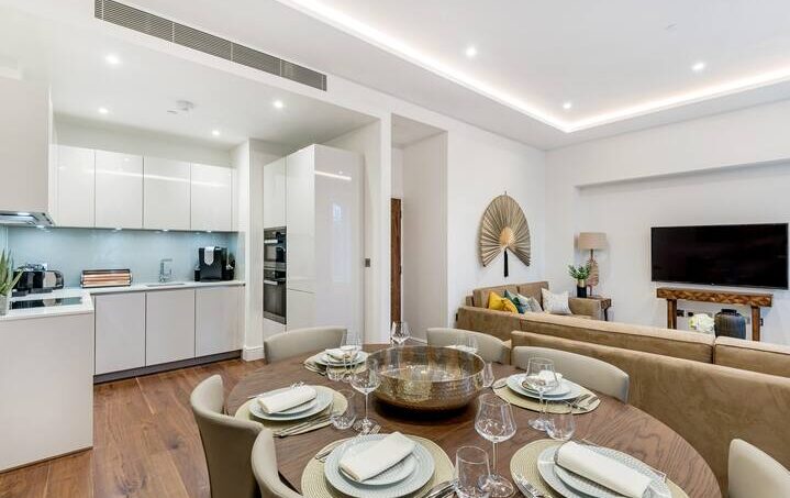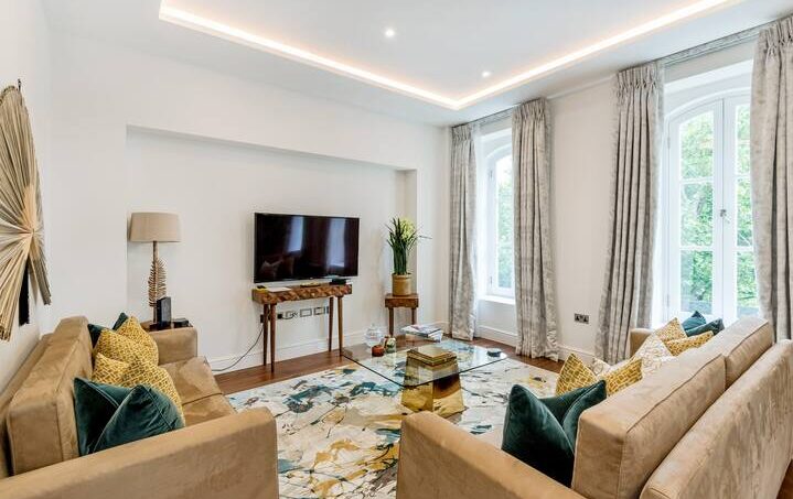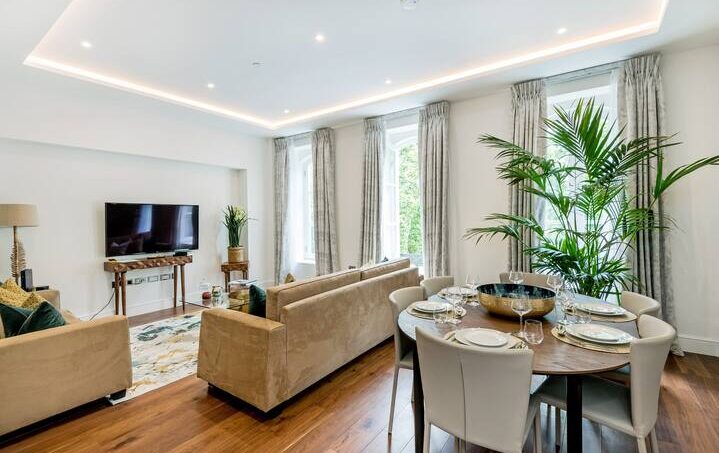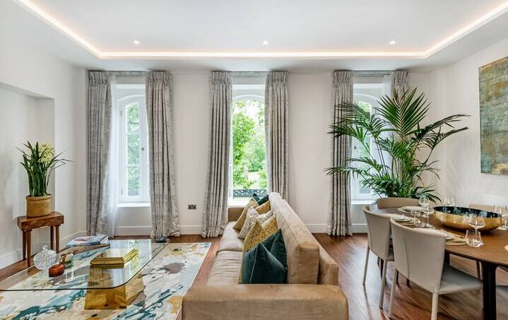 Pushing back the curtains to views of Kensington Gardens. Swapping stories with family and friends around the table. One of London’s landmark addresses. And a three-bedroom apartment to make you at home.