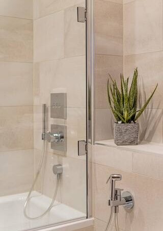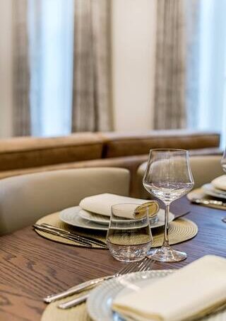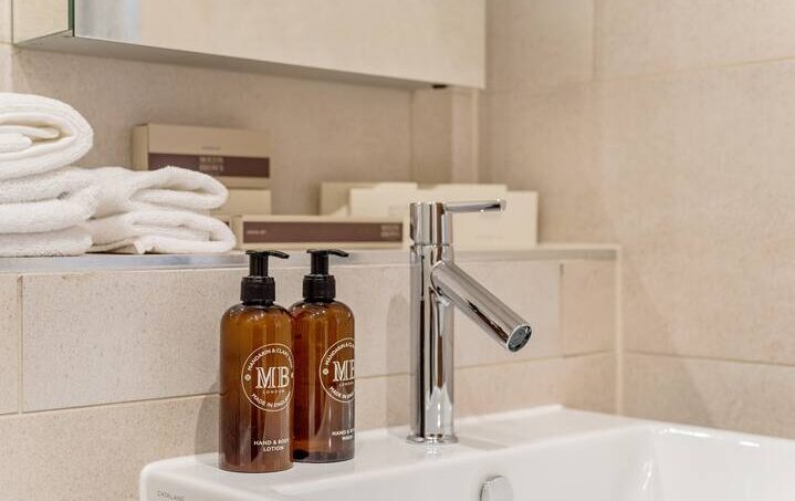 The bright, streamlined kitchen makes light work of quick bites between exploring the city. A well-stocked coffee machine. A water filter and eco-friendly bottles. But also high-end appliances for home-cooked meals around the six-person dining table. Raise a toast before you slope off for a long soak with Molton Brown bubbles. Bedtime is especially inviting when the sheets have been turned down for you. Sleep well.