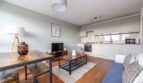Two bedrooms apartment with 1 bathroom, a kitchen with top appliances, and a large living room.