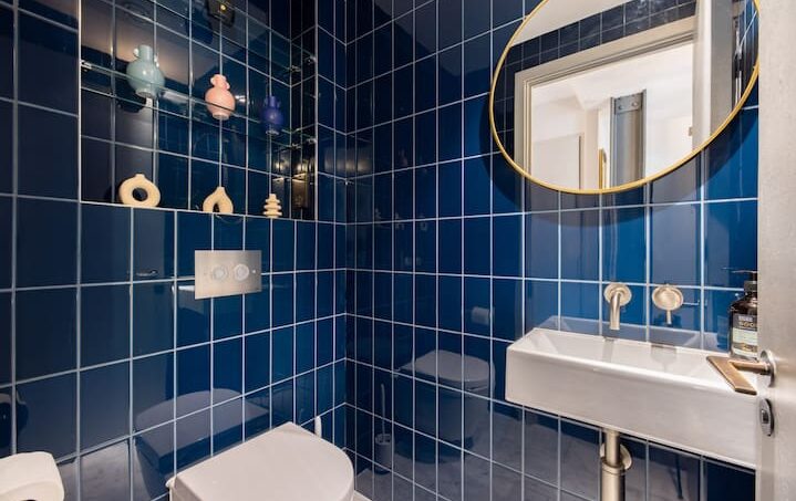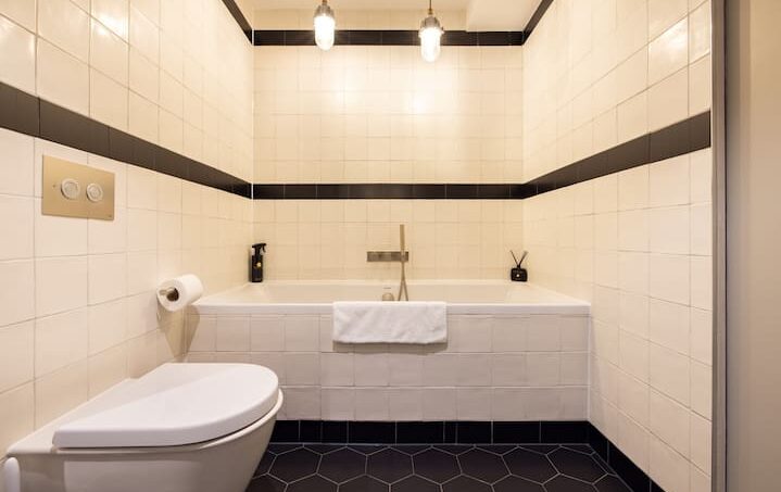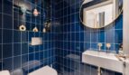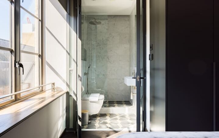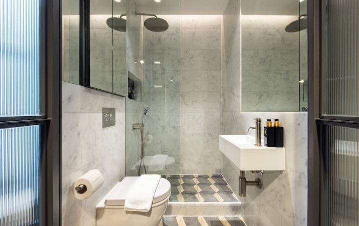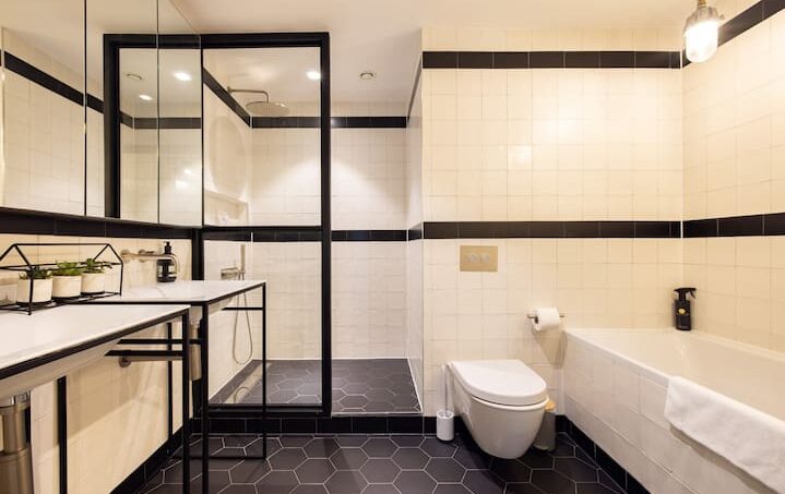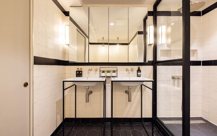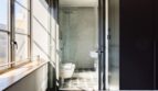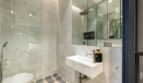 There are two full bathrooms, both of which are modern and stylishly designed.