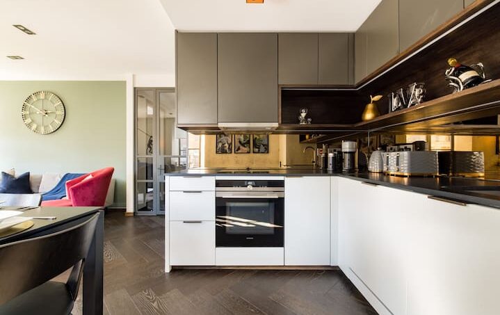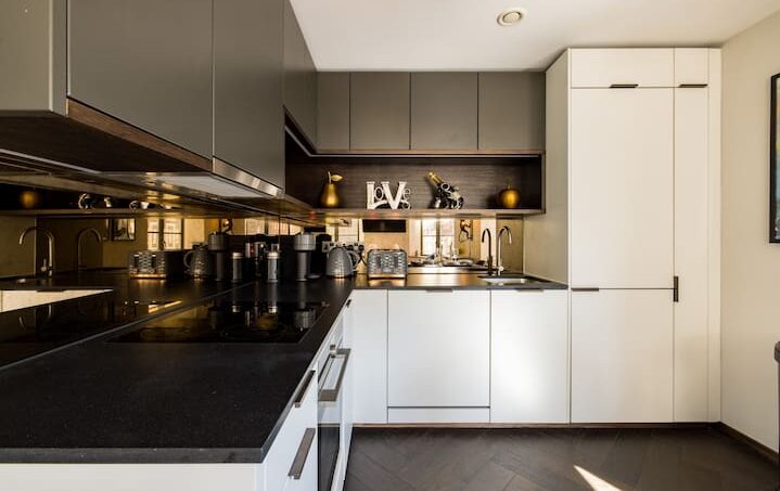 The kitchen is fully equipped with all the necessary appliances and utensils for cooking and dining. There’s a stove, an oven, a microwave, a refrigerator, a dishwasher, and a coffee maker. The cabinets are stocked with plates, glasses, silverware, and cooking essentials such as oil, salt, and spices.