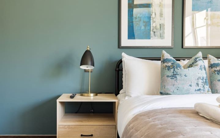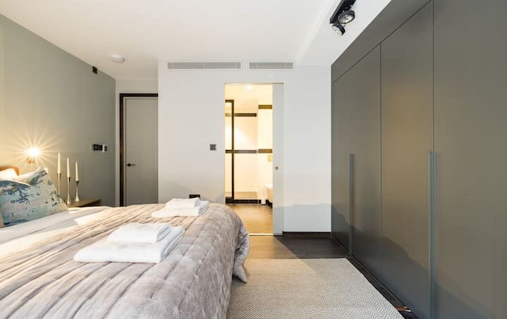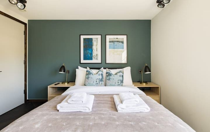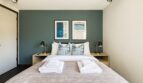 – The master en-suite bedroom is spacious and features a comfortable king-size bed, high-quality linens, and large windows that let in plenty of natural light. There’s also a tall wardrobe for ample storage.