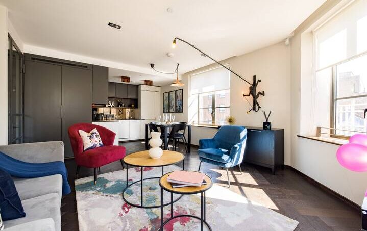 The flat is located in the heart of Soho, just a few steps away from Oxford Circus. This area is known for its vibrant nightlife, trendy shops, and excellent restaurants. From here, you can easily walk to many of London’s top attractions, such as the British Museum, the National Gallery, and Covent Garden.