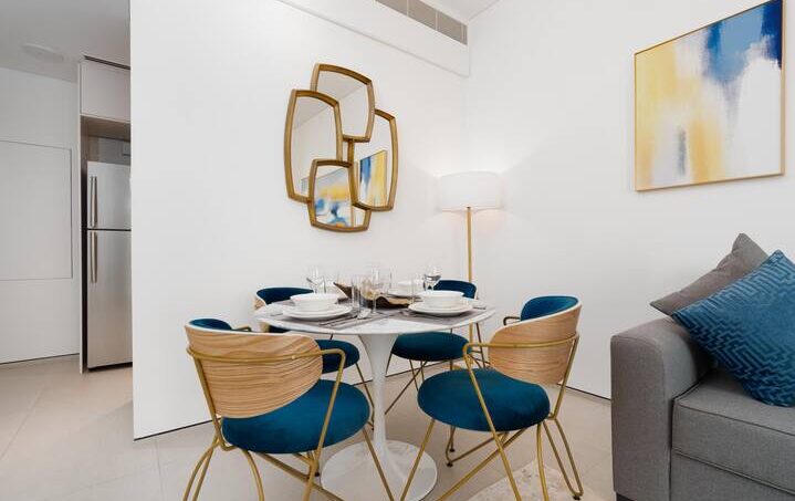 The fully-equipped kitchen embodies the epitome of culinary convenience, equipped with state-of-the-art appliances and ample counter space. Whether you’re a culinary enthusiast eager to experiment with local flavors or simply seeking the ease of preparing quick meals, this kitchen is designed to meet your every need. The adjacent dining area offers an intimate setting for shared meals, creating an atmosphere of togetherness and connection.