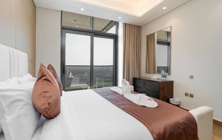 Step into elegance with this beautifully designed 3-bedroom apartment, where modern aesthetics meet ultimate comfort. The sleek, open-concept layout features contemporary furnishings and high-end finishes, creating a sophisticated space perfect for both relaxation and entertaining. Each bedroom is a serene retreat, designed with luxury in mind, while the spacious living areas invite you to unwind and enjoy. This apartment offers the perfect blend of style, comfort, and convenience for your stay.