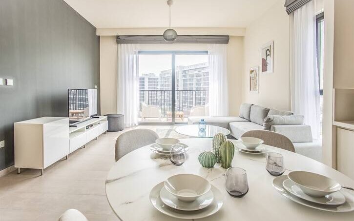 This beautifully furnished apartment is located in Dubai Hills a luxurious residential community located in the heart of Dubai, offering a perfect blend of modern living and natural surroundings. The area is home to several world-renowned golf courses, stunning parks, and a variety of recreational activities, making it a popular destination for travelers looking for a relaxing and peaceful getaway.