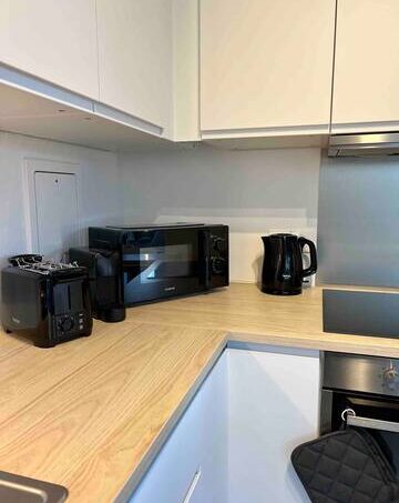 As you step inside, you’ll find a comfortable living space perfect for unwinding after a day of city exploration. The convertible sofa bed accommodates an additional 2 people making it ideal for families or larger groups.