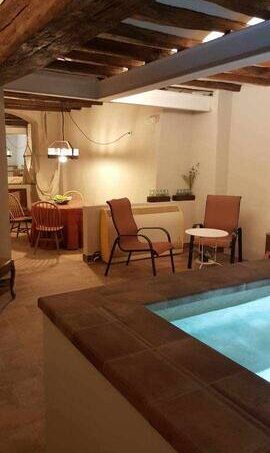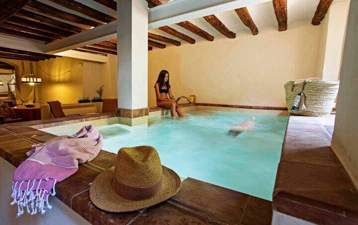 Included in the price, you will have access to the indoor heated and communal swimming pool, but exclusively for you during the hours you book it. It is open 24 hours a day and is set to a pleasant and welcoming selection of music by DJ Enric Canadell of Feelgood Music, adapted to 432 Hz tuning. The music played in this tuning balances and elevates the energy.