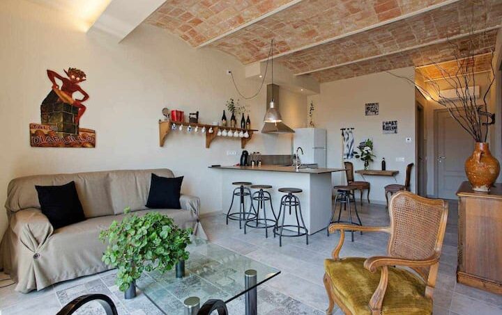 Charming flat in our property. With 2 bedrooms, fully equipped kitchen, living room with mountain views and bathroom. Super cosy decoration by Adela Torras, with lots of charm.