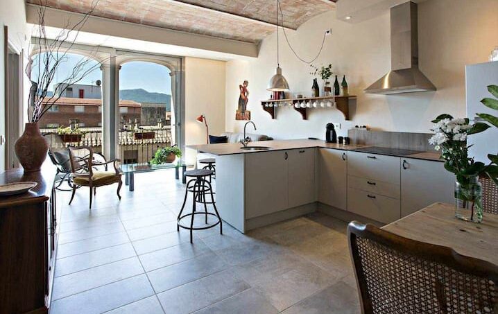 Located in the centre of Olot with a balcony and views of the church of Sant Esteve and the main street. It is a very quiet pedestrian street. We are surrounded by all kinds of shops, restaurants, bars, bakeries, supermarkets, the market square, the municipal library, the tourist office and 15 minutes walking from the Montsacopa volcano with spectacular 360º views of the whole city and the mountains of La Garrotxa and the Pyrenees.