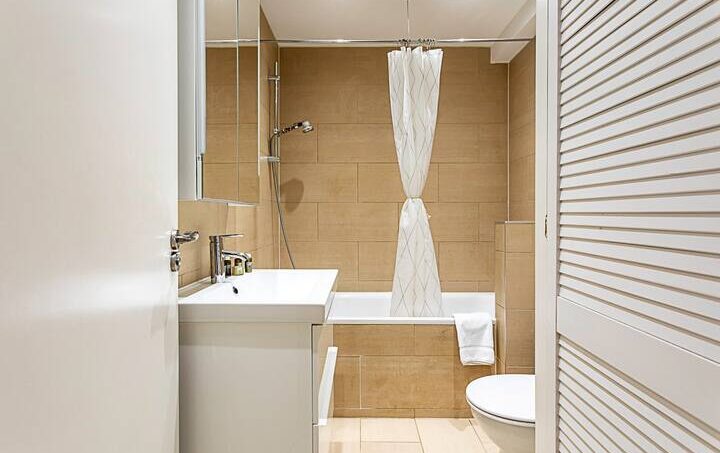 The living room features a generous sofa, a large dining table and a Smart TV. The kitchen is fully equipped with modern appliances including a dishwasher and Nespresso machine, as well as all the cooking utensils you could need. The bedroom features a comfortable double bed while the bathroom includes a large bathtub. The south-facing balcony is perfect for a morning coffee or an outdoor lunch, and if you need to work during your stay, the apartment offers comfortable workspaces as well as high-speed WiFi.