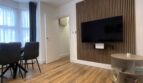 This stunning 1 bedroom house is spread on two floors, on ground floor you will find the living area equipped with a comfortable sofa convertible to a King size bed, 55\” Sony TV (Sky channels and Netflix), modern dining table that could be used as a workspace (There is a super-fast fibre optic internet access in every room); the high quality kitchen is fully equipped with integrated fridge freezer, dishwasher machine, electrical hob and oven, extractor, microwave, coffee machine, kettle, toaster and all kitchen tools you need to make from a quick snack to a three course evening meal.