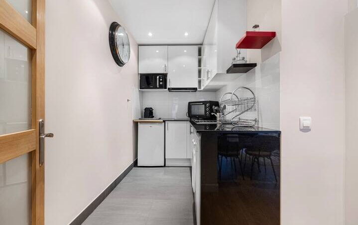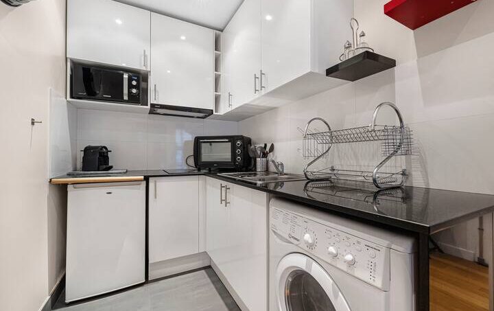 – la cuisine entièrement équipée avec micro-ondes, plaque de cuisson, réfrigérateur, lave linge, lave vaisselle cafetière, bouilloire, grille-pain et tout le nécessaire pour cuisiner.