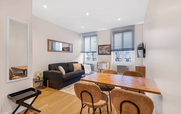– le salon : sur rue est meublé d’un canapé-lit 2 places, table basse , et est équipé d’une TV HD avec lecteur de DVD, d’un accès internet/Wifi,