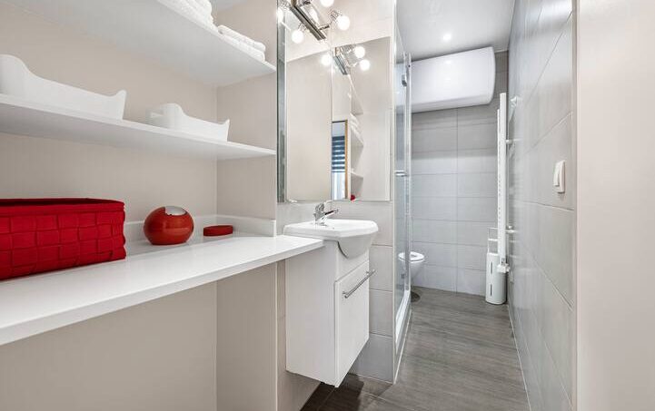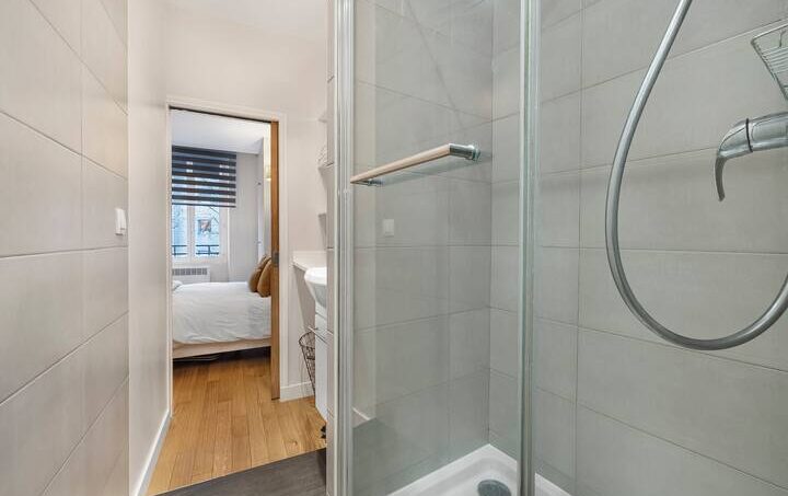 – la salle de bains : avec douche et lavabo, sèche cheveux et WC.