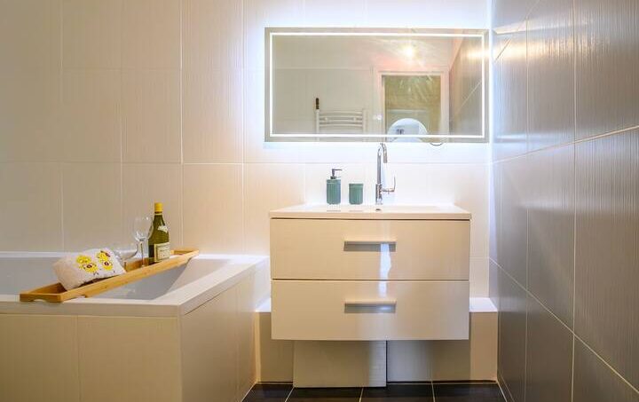 La pièce principale, située au premier niveau, se compose d’un spacieux salon ouvert sur une cuisine entièrement équipée. La cuisine moderne est équipée de tous les appareils nécessaires pour préparer de délicieux repas.