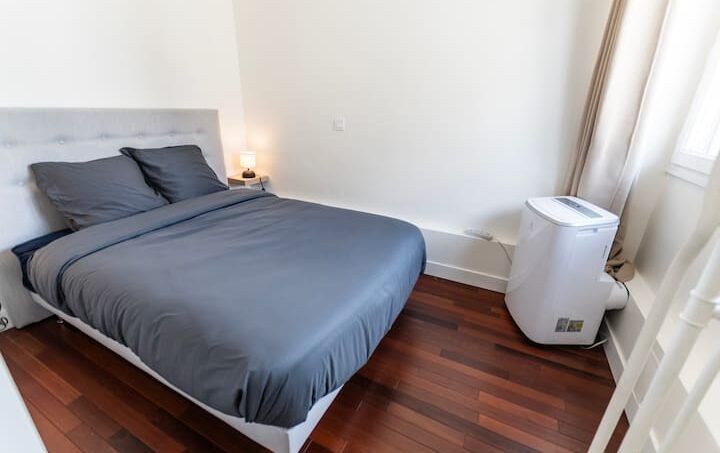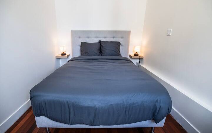 La chambre principale, située à l’étage supérieur du duplex, est un véritable havre de paix. Elle est dotée d’un grand lit équipé d’un sur-matelas, offrant un confort supplémentaire pour des nuits paisibles. De plus, la chambre dispose de grands rangements intégrés.